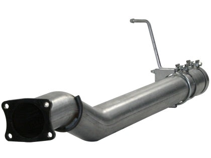The aFe Mach Force XP Exhaust System eliminates the use of the restrictive diesel particulate filter (DPF) for maximum performance and extreme mileage gains. This free flowing exhaust system is constructed out of durable 4" mandrel bent 409 stainless steel and uses bayonet style hangers and band clamps for a clean installation. This system comes complete with all tubing, muffler, bayonet hangers, band clamps, thermocouple and pressure tap bungs and is finished off with a high luster polished 304 stainless steel, rolled, slash cut tip. You will be shocked at the performance and mileage improvement you will see from this system. This system requires the use of a controller with a DPF-delete function. All aFe exhaust systems are engineered and manufactured in our Corona, California manufacturing facility. *Features* * Bayonet Hangers - Swaged bayonet ends lock exhaust components into place for the most secure installation possible. Other manufacturers use less expensive bent hangers that allow tubes and parts to slide from side to side, causing premature wear and damage. * Welded-on Hangers - Every hanger is thoroughly welded on each side to ensure a stronger connection, compared to other manufacturers who use only inferior floating hangers. * Band Style Clamps - Premium-quality band clamps are used on critical joints to provide the tightest, leak-free seal possible. Other systems use common, less expensive U-bolt clamps. * Mandrel Bent - All aFe tubing is 100% mandrel-bent. Mandrel bending ensures the tubing maintains its shape and size, providing smooth, unrestricted airflow. Standard tubing can lose as much as 20% of its diameter in sharp bends.
